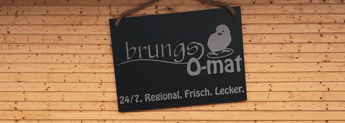 Der Brungs O-Mat ist 24/7 geöffnet. Hier bekommen Sie während unserer Öffnungszeiten und vor allem aber nach Ladenschluss und am Wochenende ausgewählte heimische Produkte.